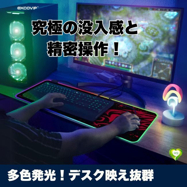 - 【多色発光!デスク映え抜群】RGBゲーミングマウスパッド カラフルLED発光 ゲーミング環境最適 滑り止め加工 大型サイズ PC 人気 おすすめ