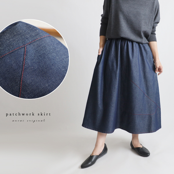 - (送料無料)2025秋の新作 78cm丈 愉快なスカート パッチワーク ギャザー ゆったり Y83D