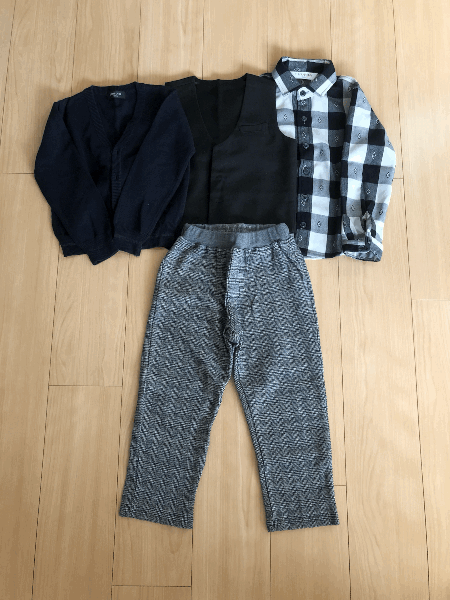 - 【セット価格!】キッズ#7 「パンツ」+「シャツ」+「ベスト」+「カーデガン」セット( COMME SA ISM / 110cm / 120cm )