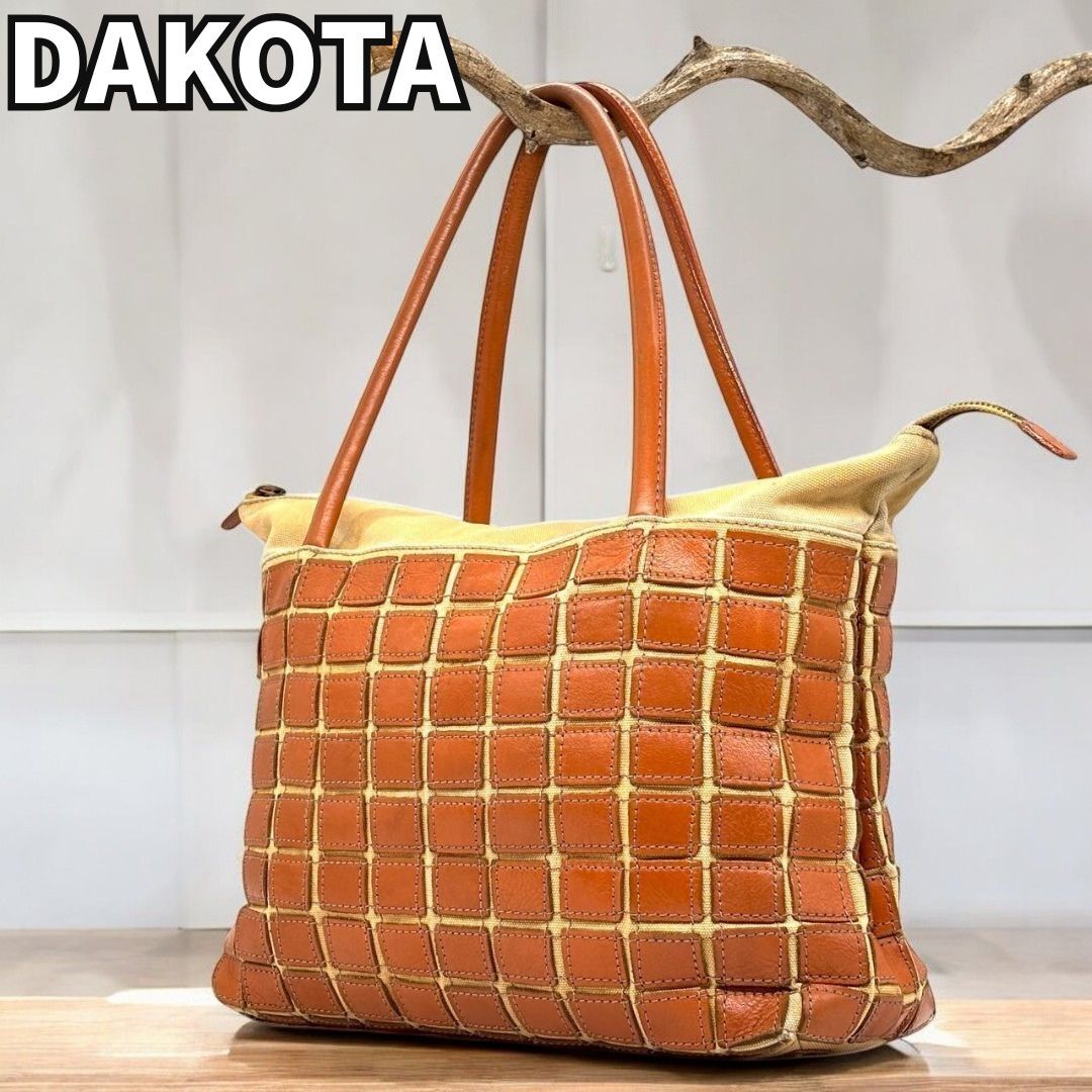 - Dakota ダコタ トートバッグ ブロックレザー キャンバス A4収納 大容量 ブラウン