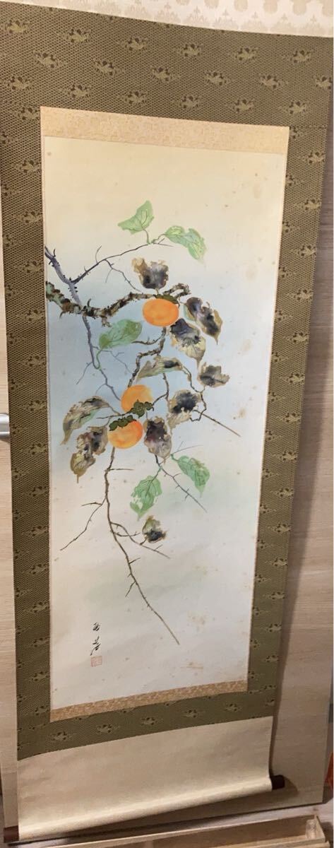 - ▲ 柿の図 掛軸 柿の木 柿の葉 外箱 桐箱つき ▲286777 ①