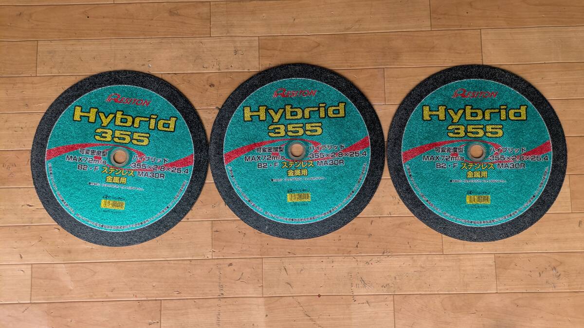 > No.907●切断砥石●MA30R●未使用品●RESITON●Hybrid 355●355×2.8×25.4●3枚入り●ステンレス・金属用