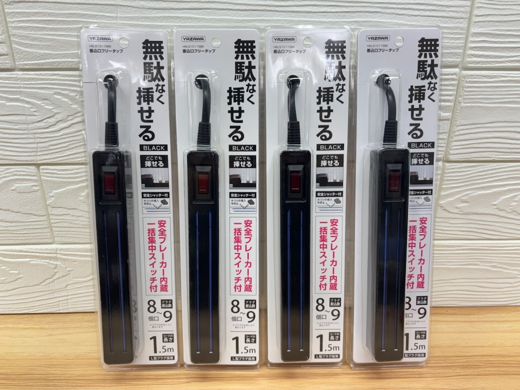 - A213 YAZAWA ヤザワ 4本セット 節電に便利な一括ON/OFFスイッチ付き 無駄なく挿せる 差込口フリータップ 8~9個口 1.5m H6LS10115BK