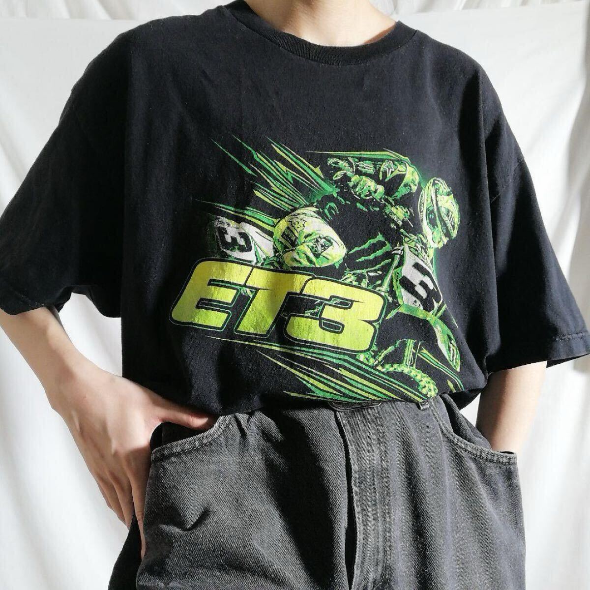 > 古着 00s ALSTYLE 半袖 レーシング プリントTシャツ ET3 イーライ・トマック TOMAC モトクロス オートバイ バイク ブラック メンズXL /1625