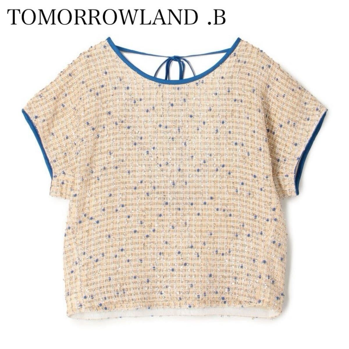 - 定価8.8万【24AW】TOMORROWLAND .B トゥモローランドビー LINTONフィルム キャップスリーブブラウス ツイード ジョーゼット 現行 近年