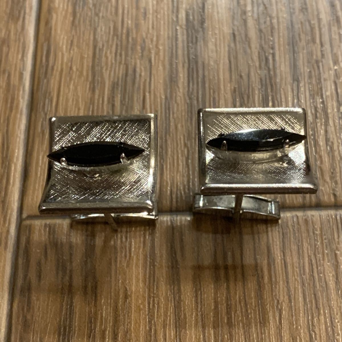 - 送料無料 US ヴィンテージ カフリンクス ブラックストーン オーバル