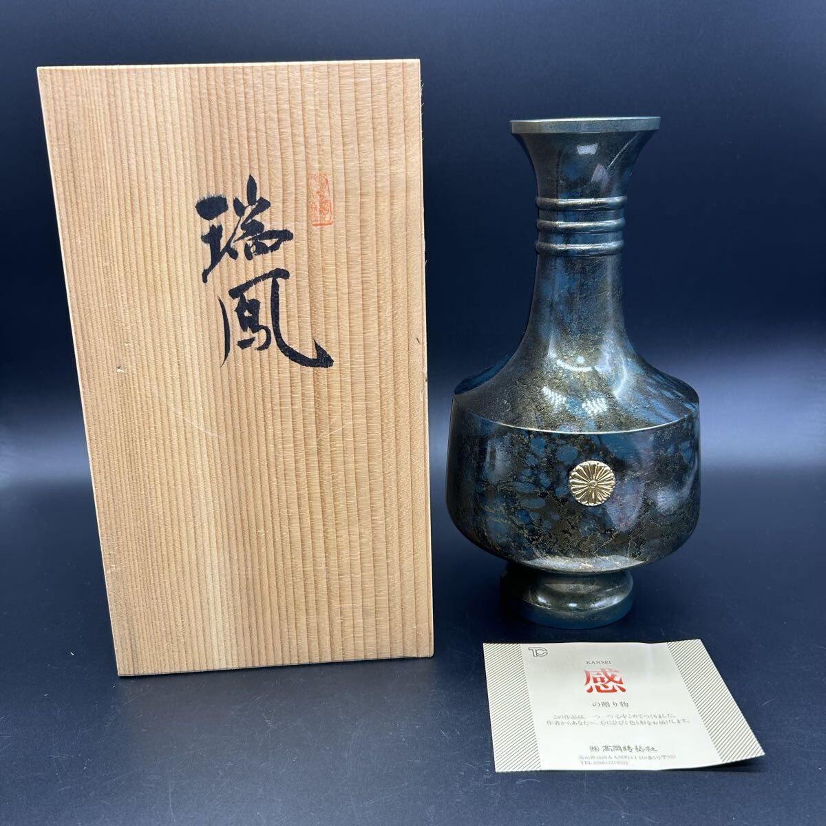 - 高岡銅器 瑞鳳 幸山 菊紋入 鋳銅 花瓶 花入 花器 壺 インテリア エ16