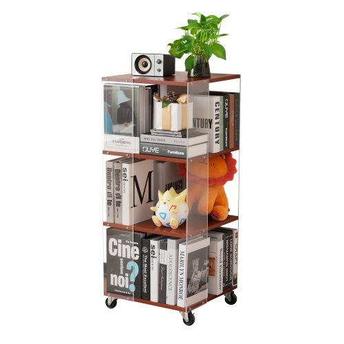 - 棚 本棚 3段 おしゃれ 絵本棚 大容量 スリム アクリル 木製 絵本ラック 360°回転ラック コミックラック 漫画収納 が ディスプレイ書棚