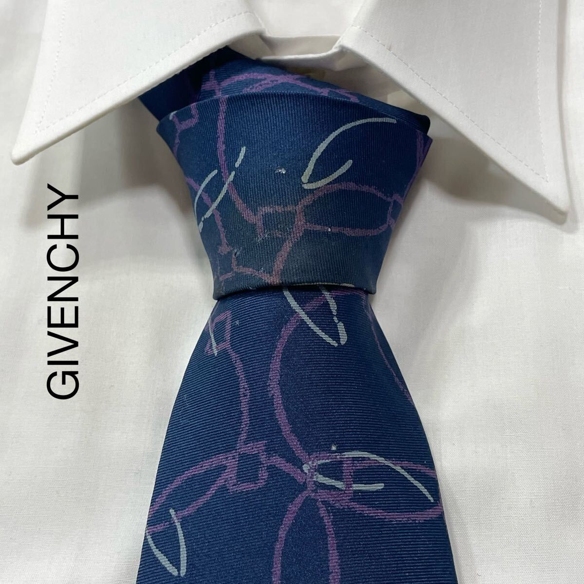 - GIVENCHY ジバンシー アート パターン柄 シルク ネクタイ イタリア製 ネイビー TG2735