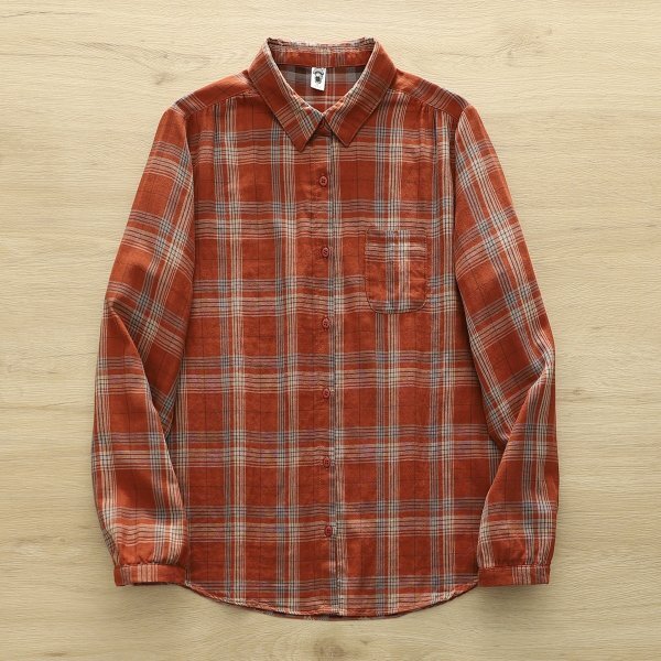- c 2508 ダブルガーゼ フリーサイズ ワイシャツ チュニック トップス ナチュラル 綿100% 通気性肌触り抜群 サラサラ ゆったり チェック柄1