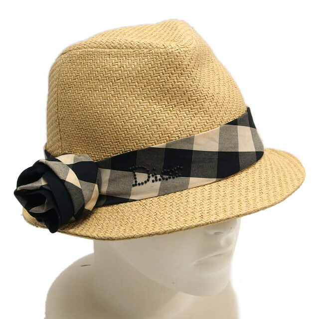 - クリスチャンディオール チェックリボン パナマハット T4サイズ[20250807]