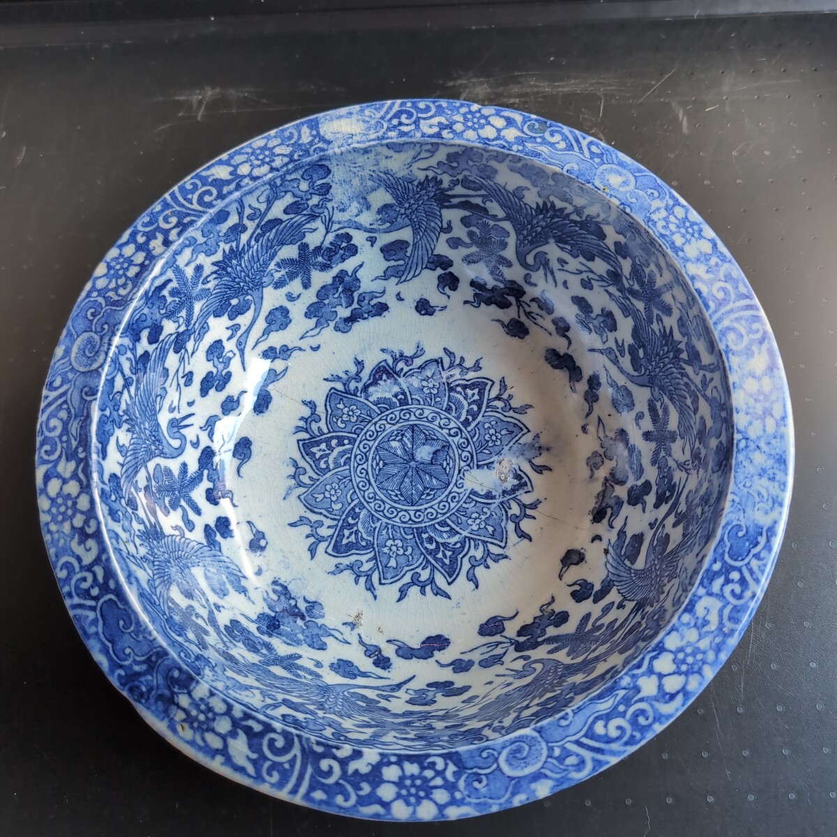 - ●明治時代?●陶器製ボウル●鶴に唐草模様●中古品●2