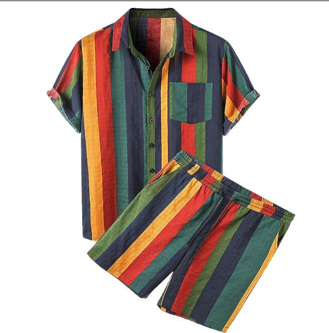 - 大人気セットアップ 夏新品 上下セット メンズ 半袖シャツ アロハシャツ ハーフパンツ ビーチ ハワイ 海シャツ 海パンツ M