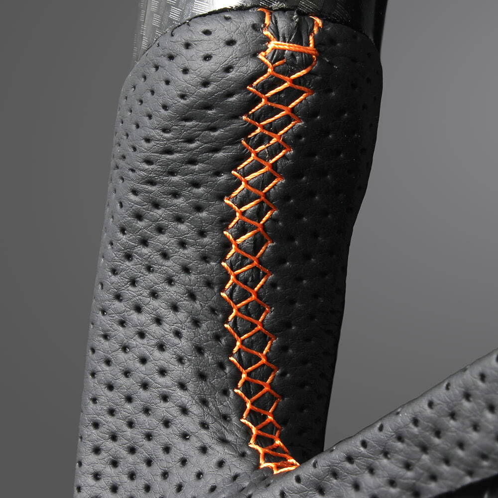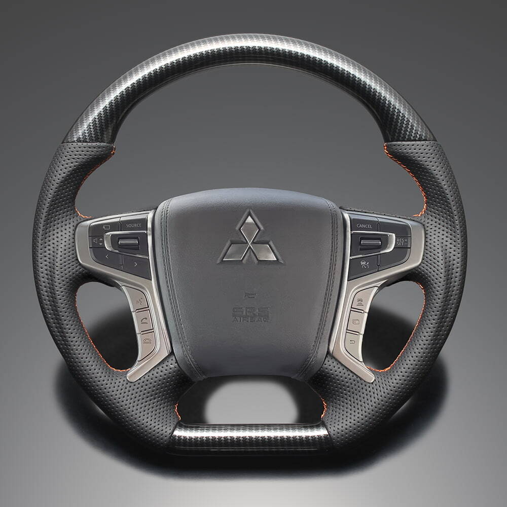 - FEGGARI デリカD5 CV系 後期 ステアリング ブラックカーボン調 x PVCレザー(ダークグレー) x オレンジ ユーロステッチ / LS300 フェガーリ
