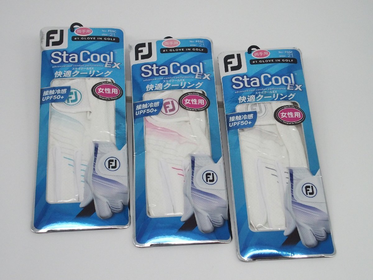 - 【未使用品】フットジョイ FJ StaCool EX 女性用 ゴルフグローブ 3色セット 白×(ピンク) 白×(ブルー) 白×(グレー) サイズ21