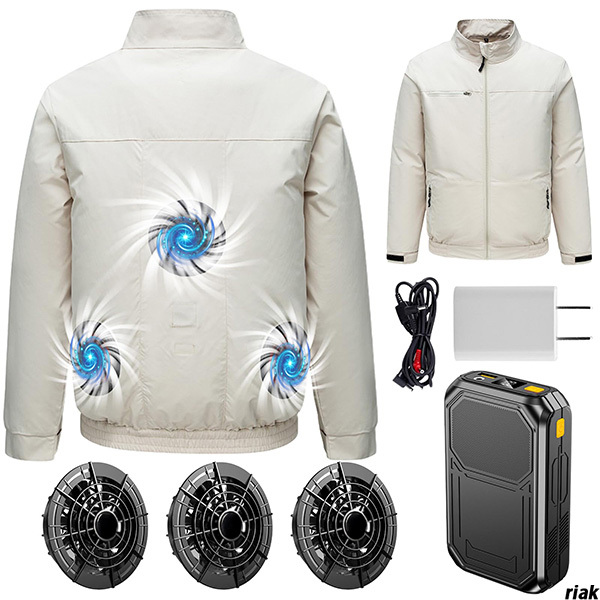 - 【風量は4段階で、使用環境に合わせて調節可能】 ファン付き作業服 空調作業服 長袖空調ウェア 熱中症対策 ウェア型扇風機 L/XL ベージュ