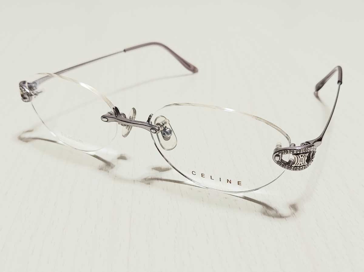 > 新品 CELINE セリーヌ 日本製 ブランド メガネ 眼鏡 高級感 オシャレ 上品 ツーポイント チタン 軽い ピンクシルバー ロゴ
