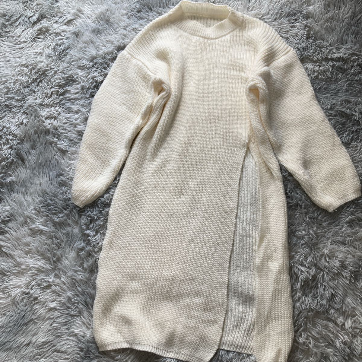 - 深いスリットざっくりニットワンピースオフ白M used10