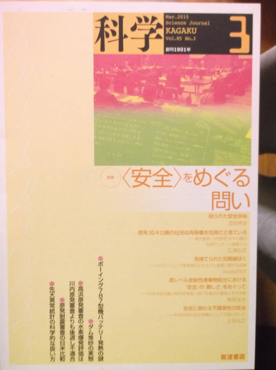 > 岩波 科学 安全をめぐる問い 2015年3月号 VOL.85 NO.3 / 削られた安全余裕 見捨てられた初期被ばく 原発再稼働 787型機バッテリーの発熱 本