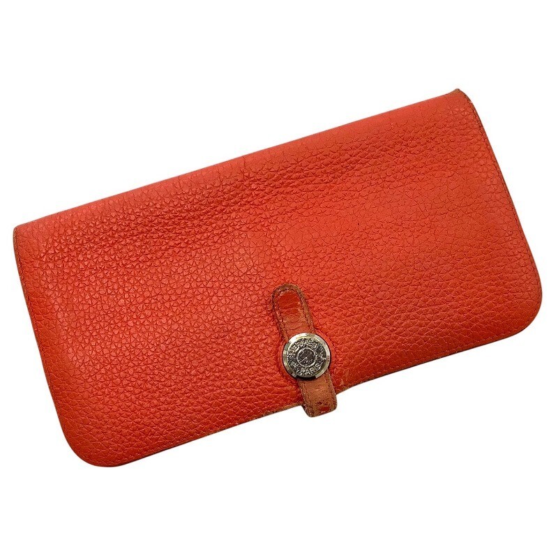 > HERMES エルメス ドゴンロング レッド系 トリヨンクレマンス シルバー金具 長財布 シボ ウォレット □O刻印【中古】MK-1940 JA-23867