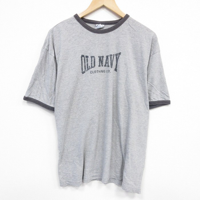 > XL/古着 オールドネイビー 半袖 ビンテージ Tシャツ メンズ 00s ビッグロゴ 大きいサイズ クルーネック グレー 霜降り リンガー 25aug07 中