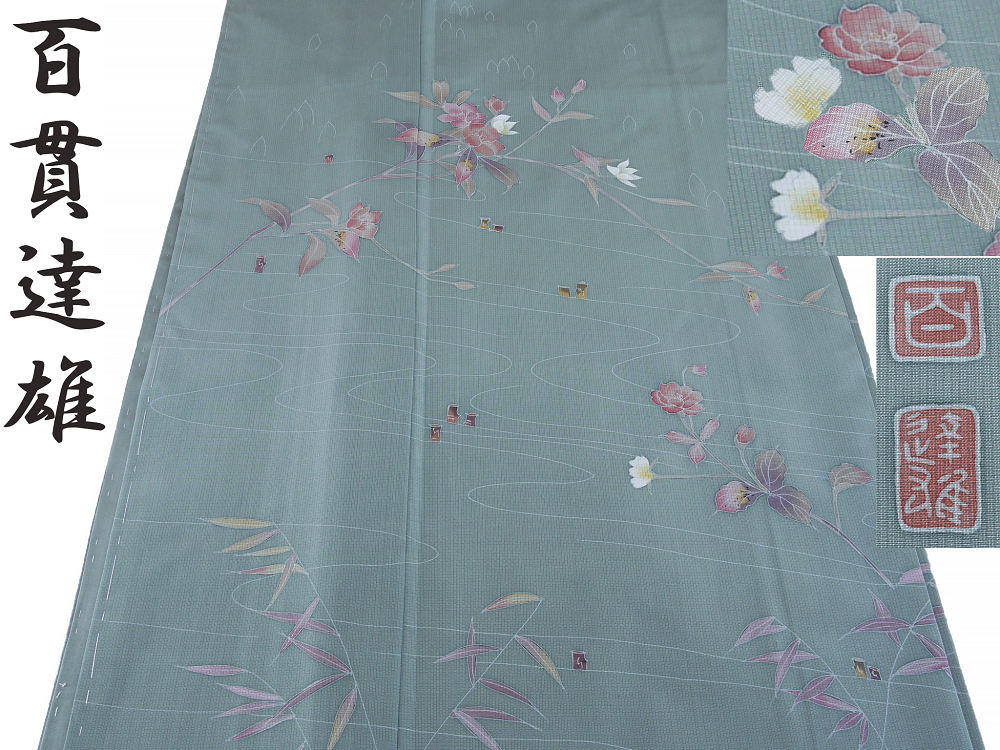 > 【京かんざし】b-338★京加賀友禅 百貫達雄 訪問着 本場縞大島紬 お仕立上り 躾糸付未着用★即決送料無料!