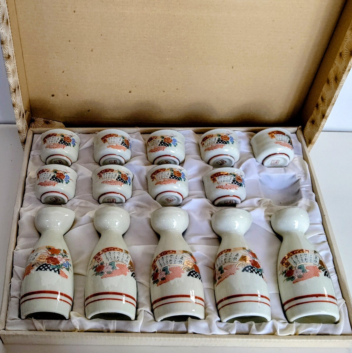 - 新品 未使用 酒器 九谷焼 徳利 お猪口 酒器セット 陶器 ぐい呑み 金彩 骨董 おちょこ 徳利5本 お銚子9個 友禅