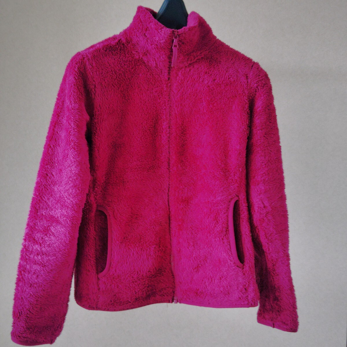 > M 良品 UNIQLO ユニクロ フリース 濃い 紫 パープル モコモコ M フルジップ 長袖 ジャケット 防寒 秋 冬 暖かい レディース