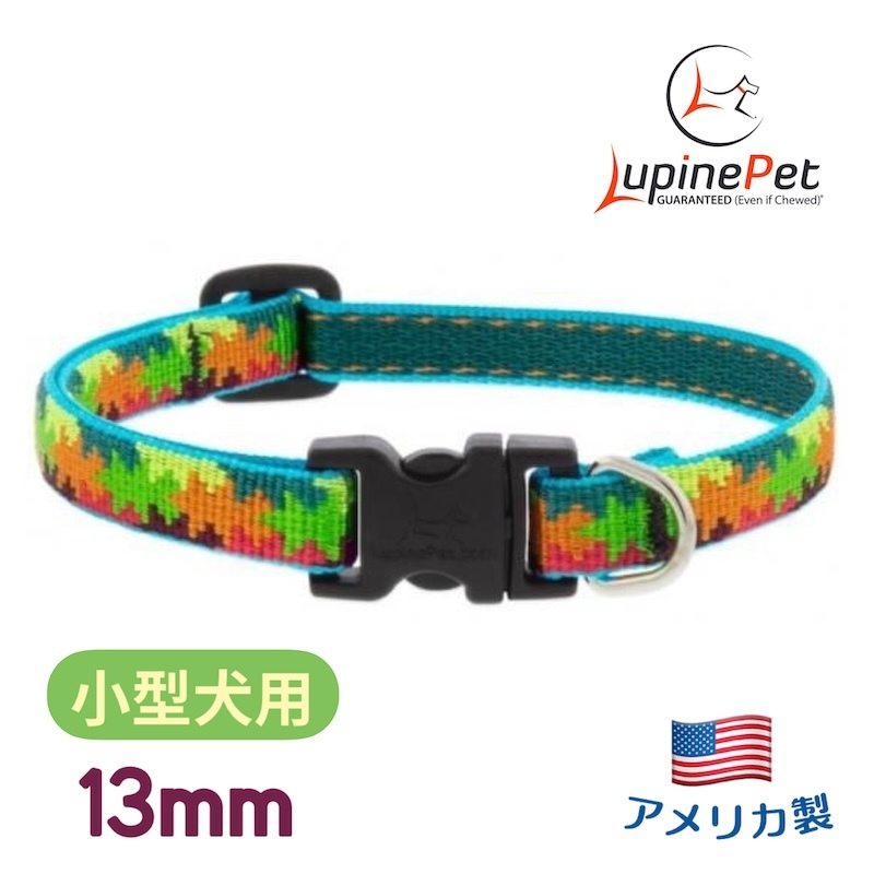 > フォールカラー柄 小型犬向けワンタッチ首輪13mm幅XSサイズ 15-22cm LUPINE アメリカ製 軽量丈夫 ルパイン Fall Color