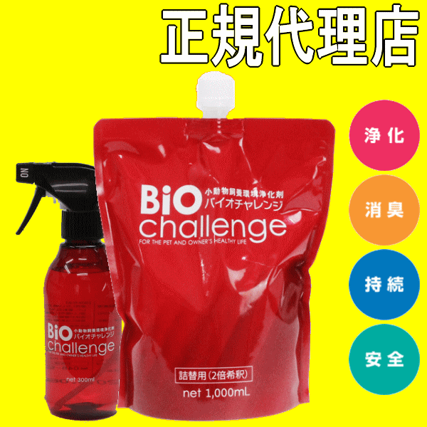 シュッシュッとスプレーするだけのとってもお手軽な人気商品 バイオチャレンジです。たくさんのペットオーナー様を初め、ブリーダーやペットショップ・美容学校・動物病院等、色々な業者様にもバイオチャレンジはお使い頂いております。日頃の衛生管理・持続・環境浄化におすすめの商品です。