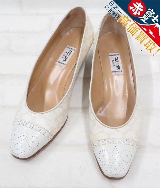 - 3S2614/CELINE マカダム柄 ブローグヒールパンプス イタリア製 オールド セリーヌ レディース