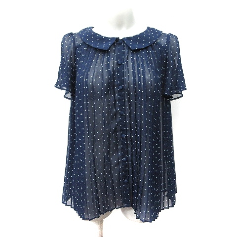 > エル ELLE シフォンブラウス シアー 半袖 プリーツ ドット 40 L 紺 ネイビー /YI レディース