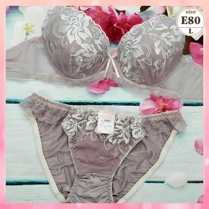 > Ze8003◎美胸ブラショーツセット【E80/L】下着 ランジェリー 蒸れ軽減 穴あきカップ リリー 紫系 新品未使用