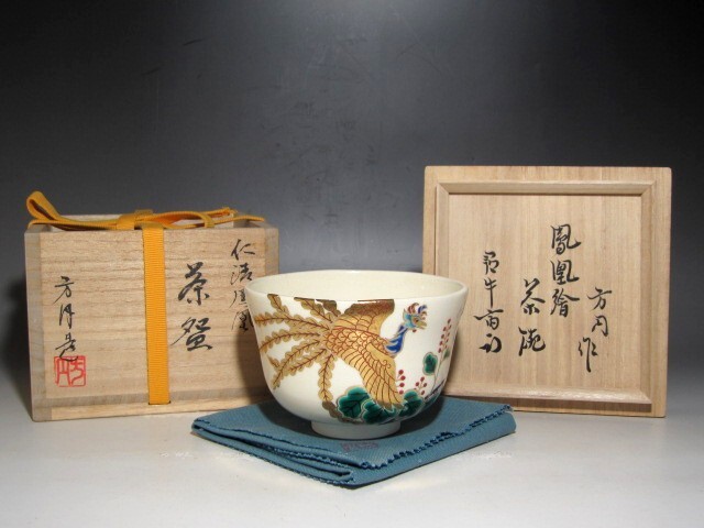 - 田中方円 鳳凰文茶碗 久田流十二代尋牛斎花押☆z642