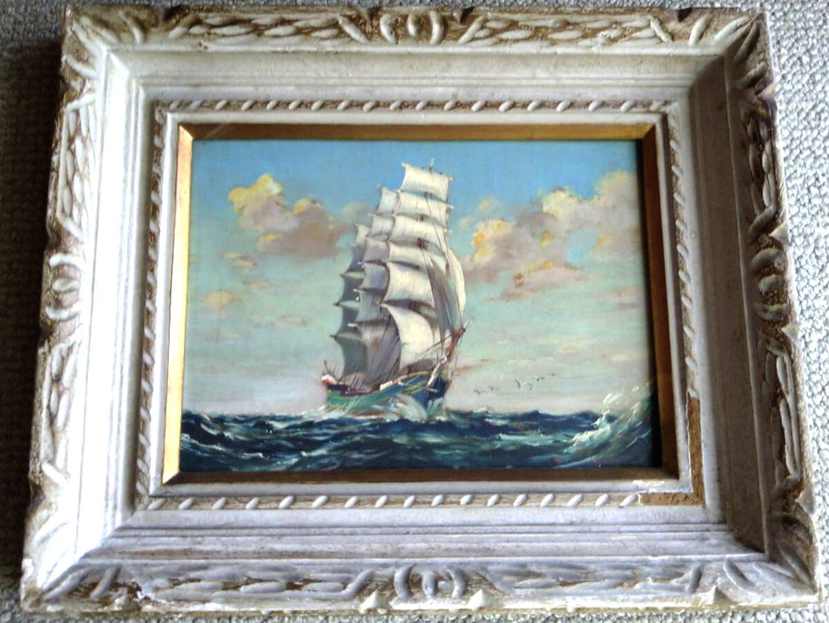 - 【お買得 貴重】帆船(トールシップ)の油絵 作者未詳 サイン有り クラシカルな額縁付 肉筆 ヴィンテージ アンティーク 真作か模写か不明