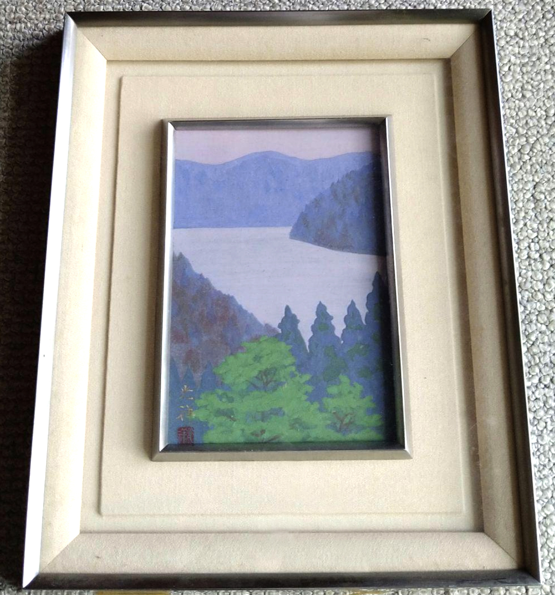 - 【お買い得】日本画 風景画(山水) サイン“光祥” 作者未詳 ガラス付額入 岩絵具 肉筆 三浦光祥か不明 真作か模写か不明のため格安