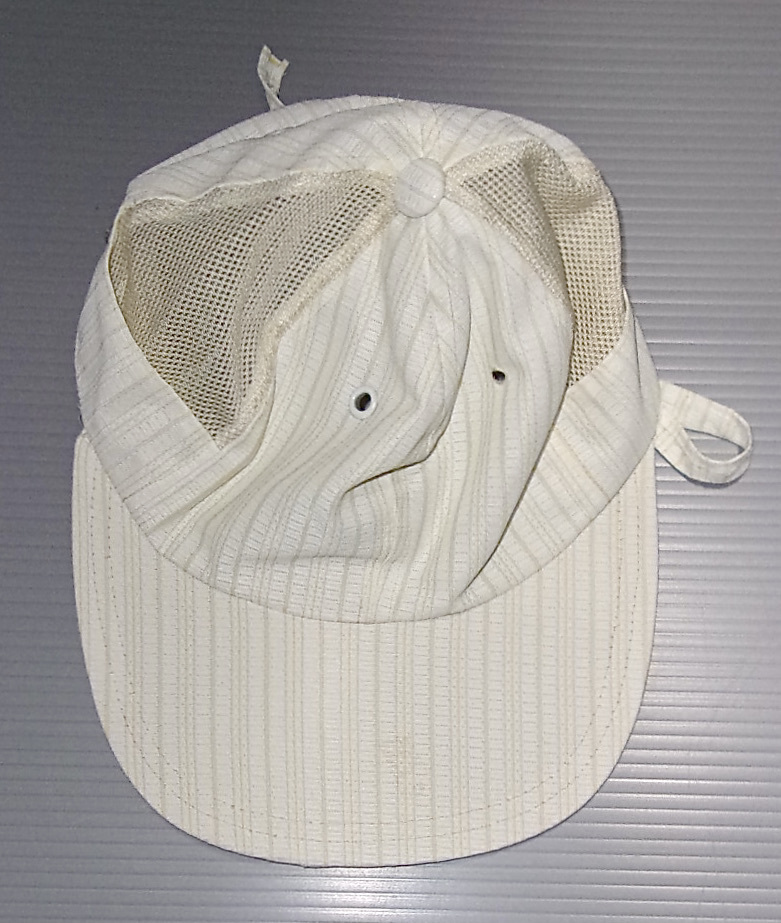 - ゴルフ キャップ 帽子 白地 イエローストライプ 昭和レトロ 1970年代