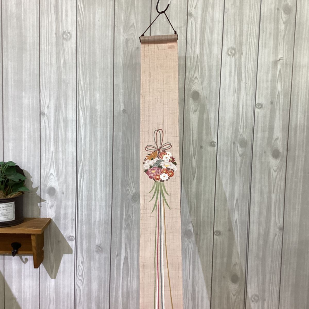 - 28☆0052 新品 京都洛柿庵 演技飾り 細タペストリー ウサギノタカラブクロ 壁飾り 柱飾り 箱付き ②☆