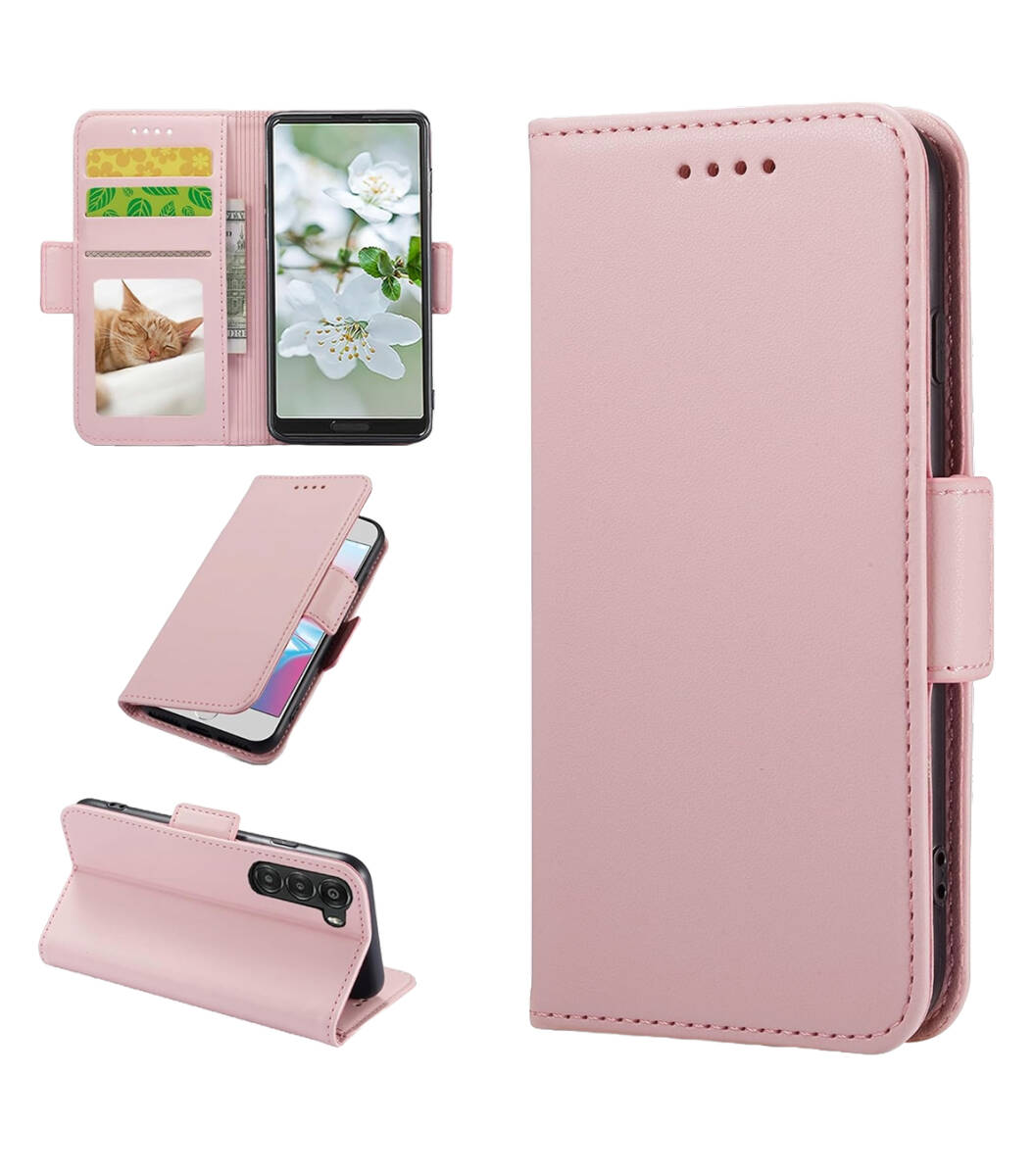 > Nubia S 5G ケース 手帳型 A403ZT カードポケット サイドマグネット スタンド機能 フェイクレザー 落下防止 擦り傷防止 ピンク ay454