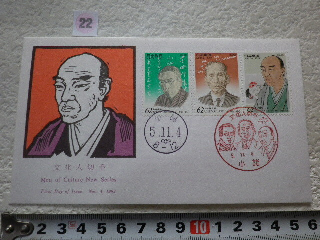 - FDC 文化人切手 渡辺崋山など 3貼2消 説明書有 jps●22●同梱大歓迎