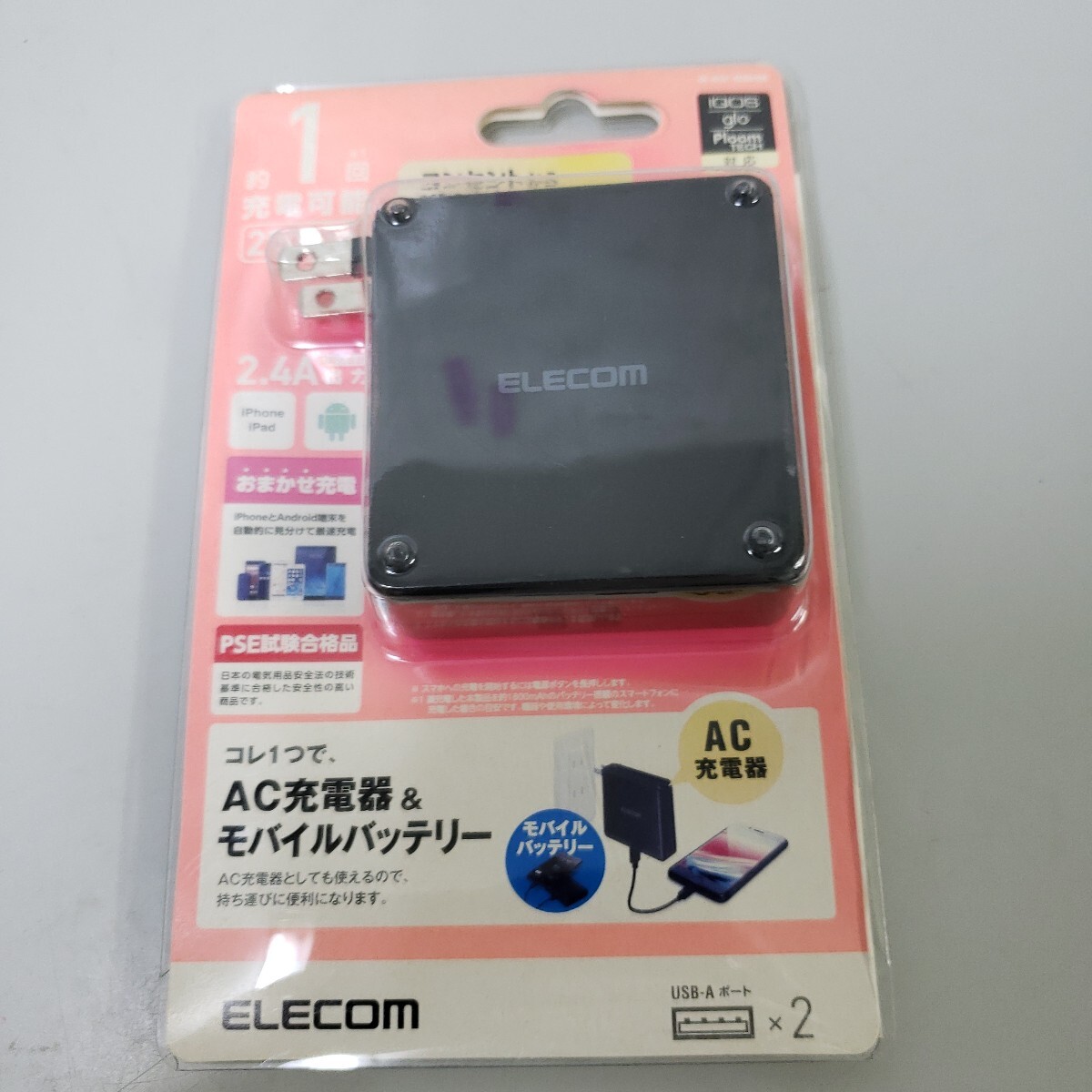 - 708y1109★エレコム モバイルバッテリー AC一体型 2900mAh USB×2ポート 2.4A ブラック DE-AC01-N2924BK