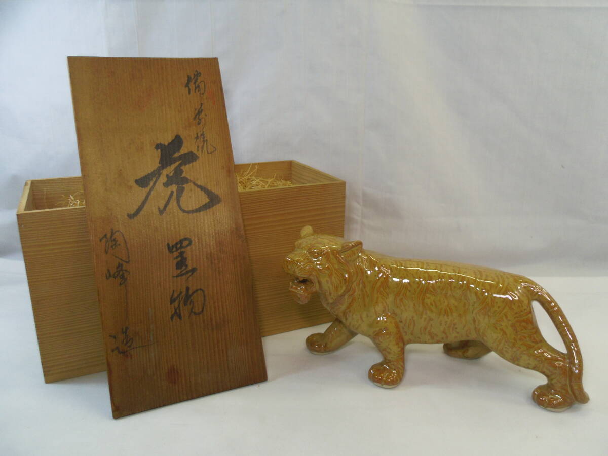 > D23◇備前焼き◇陶峰 造◇虎 置物◇トラ 寅◇元箱◇長さ30cm×高さ14.5cm◇送料880円◇