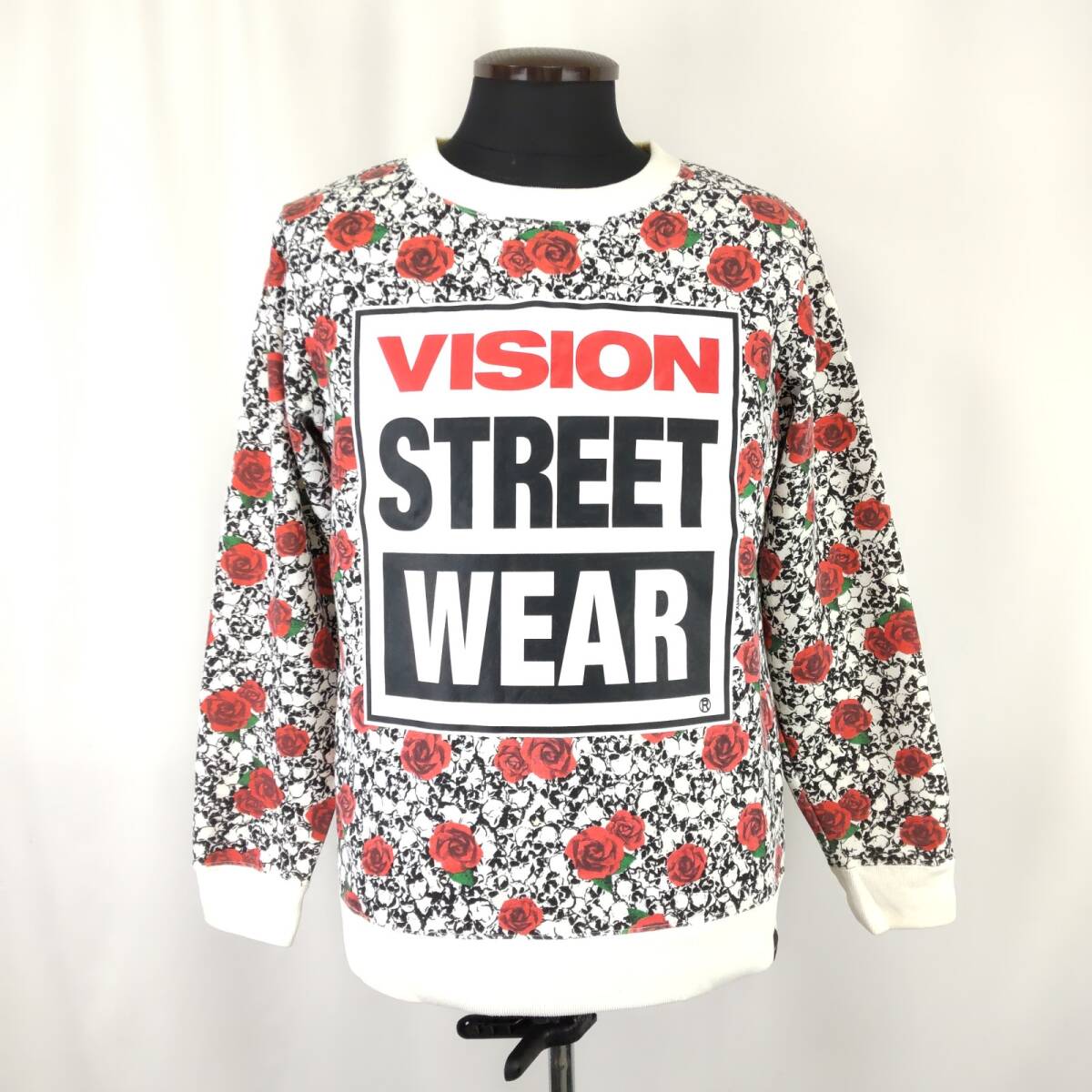 > VISION STREET WEAR/ヴィジョン★スウェット/トレーナー【メンズM/白系/バラ柄】Tops/sweater/sweatshirt◆BJ081-b