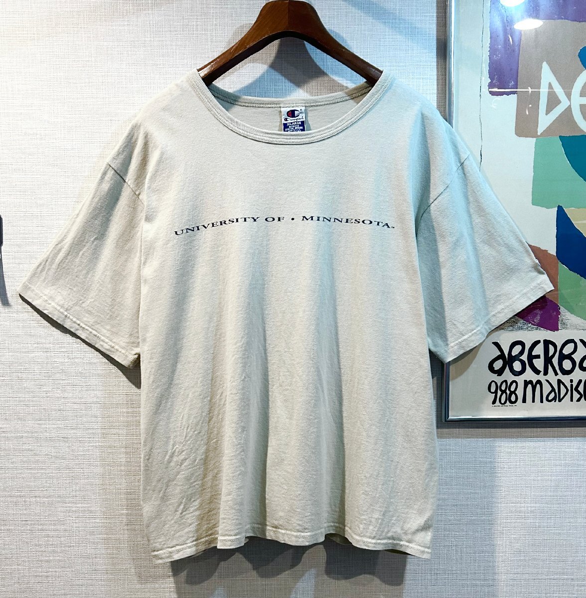 - 90's~ USA製 ビンテージ チャンピオン Champion UNIVERSITY OF MINNESOTA ベージュ Tシャツ カレッジロゴ 大学 XL EF1963-6-40-EG01