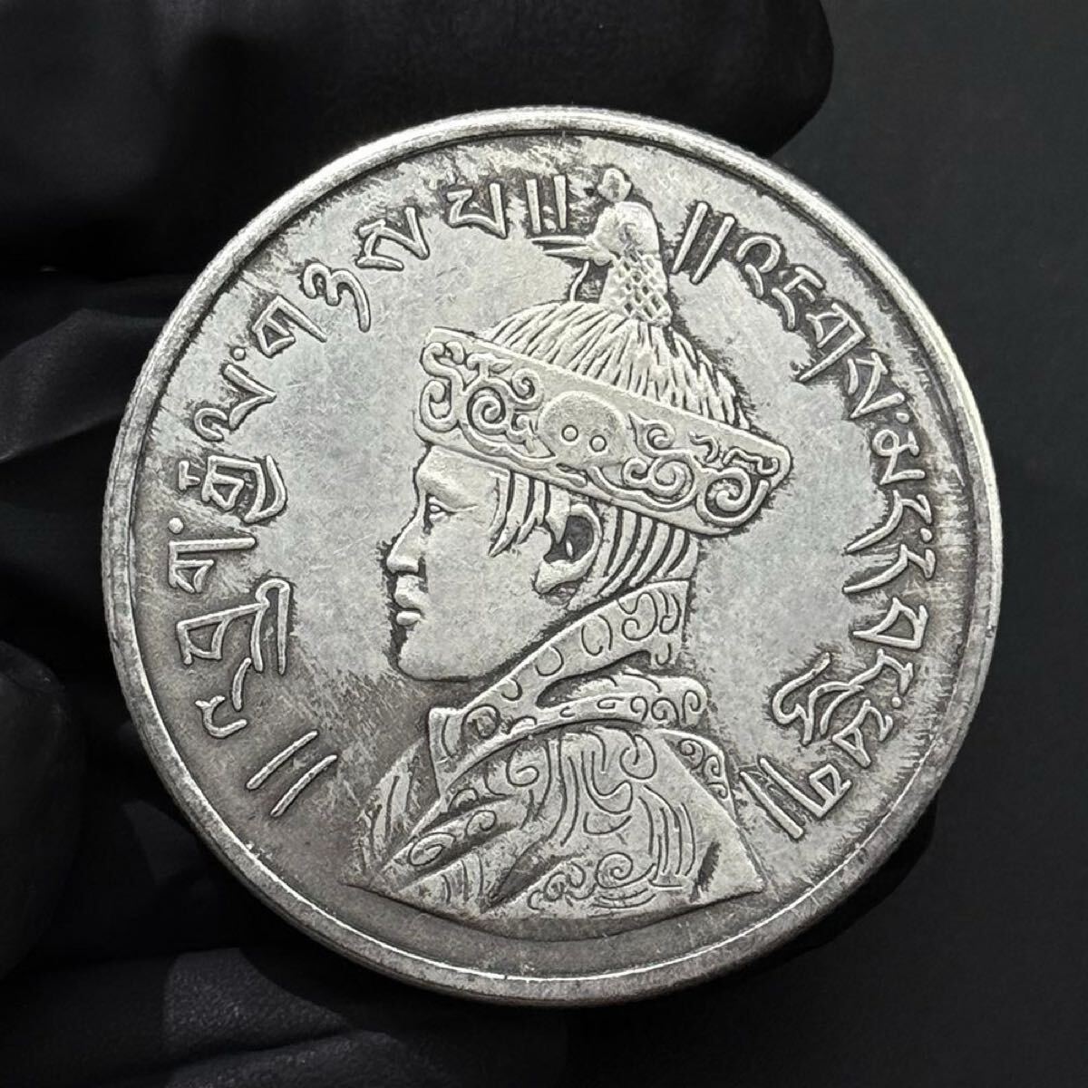 - 極美品 希少 ブータン 八吉祥 ルピー銀貨 幸運コイン アンティーク 骨董品 大型硬貨 外国銀貨 貿易銀 海外コイン 銀貨 コレクション 収蔵品
