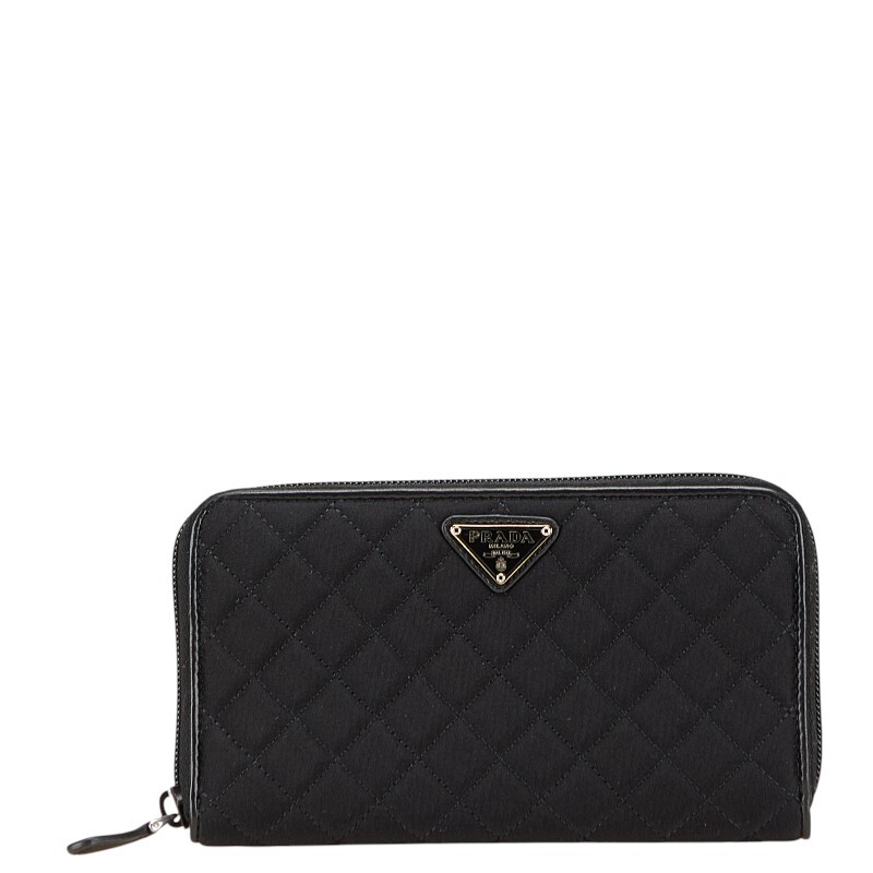 - プラダ 三角ロゴプレート 長財布 ブラック ナイロン レザー レディース PRADA 【中古】