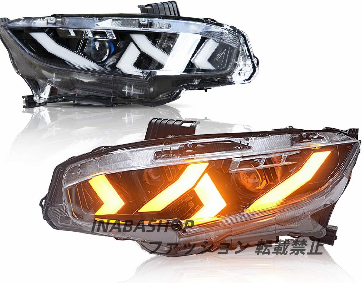 - ホンダ シビック ヘッドライトFK7 FK8 タイプ R FC1 全LEDランボルギーニスタイル ハッチバック セダン適用 流れるウインカー2016-2020