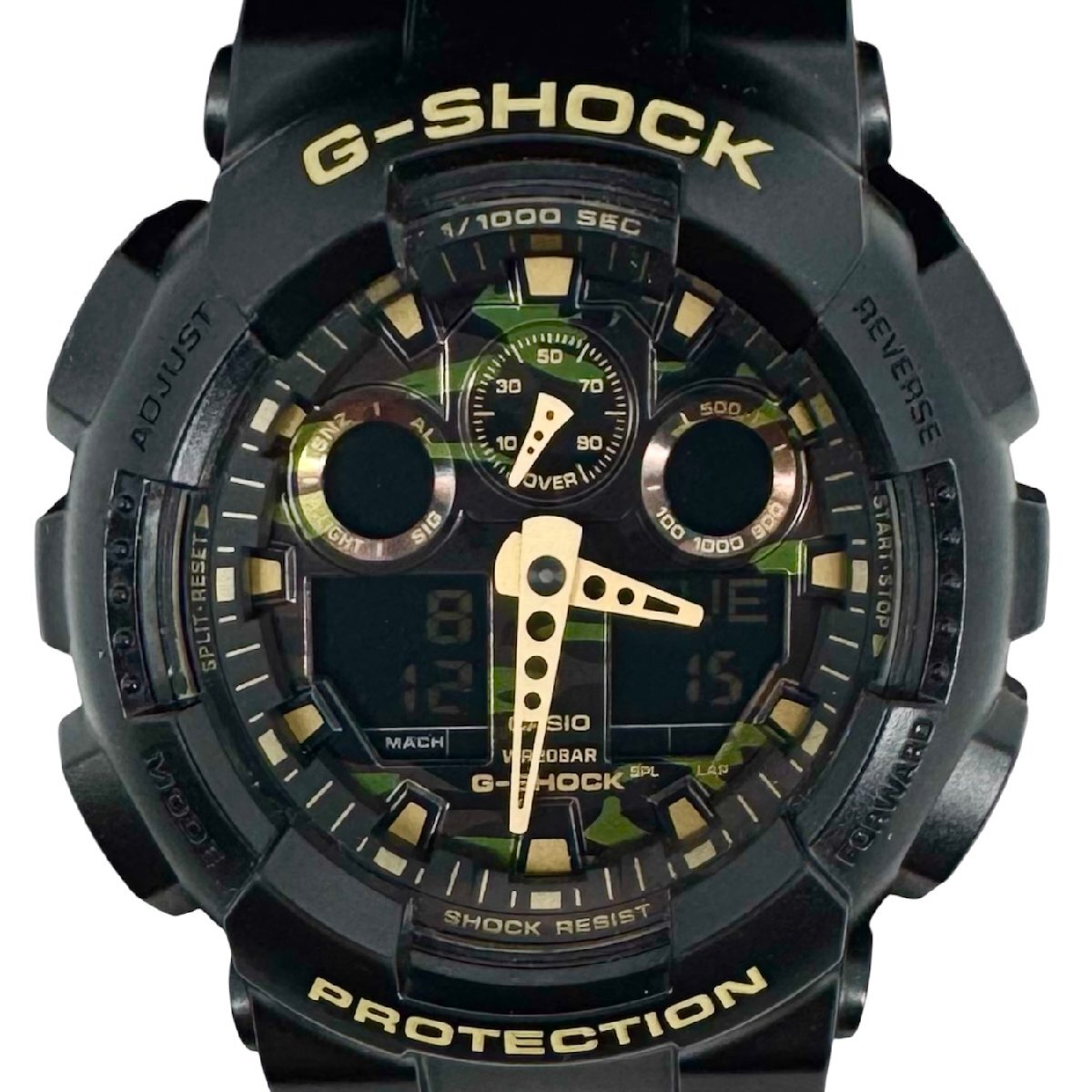 - CASIO G-SHOCK カシオ Gショック GA-100CF-1A9JF メンズ クォーツ アナデジ デジアナ 腕時計 黒×ゴールド×迷彩柄文字盤 稼働品 ケース付