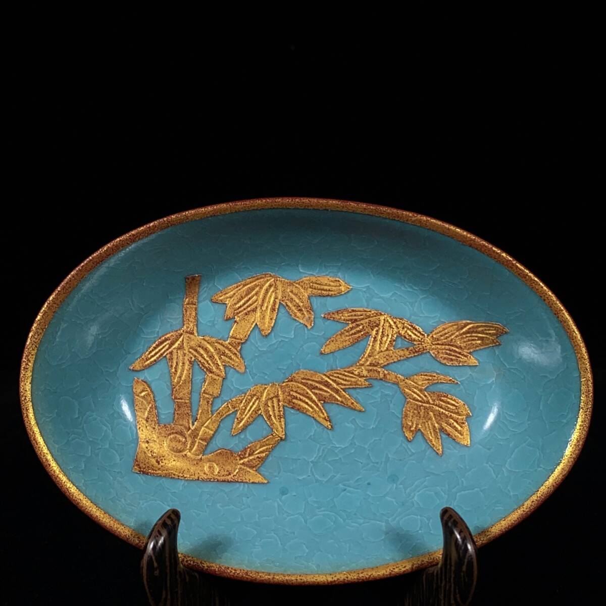 - 蔵友旧蔵出 宋 汝窯 冰裂紋 金嵌 竹子紋 橢圓洗 稀少珍品 貴重品 古陶瓷品 置物 古賞物 中国古玩 中国古美術品