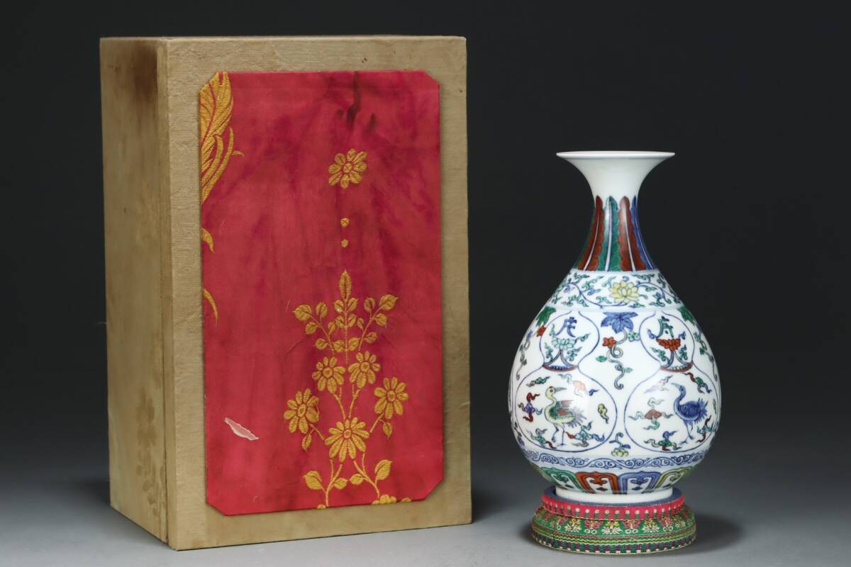 > 多宝閣 ■ 207047 中国磁器 中国骨董【明代玉鶴文胡春花瓶】工芸品 施釉陶 陶芸 置物 收藏品 孤品